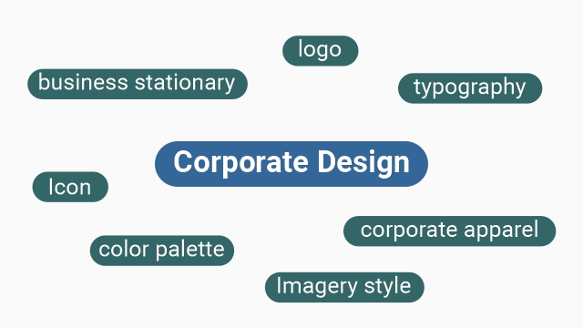 Corporate design is the visual appearance of the company. It refers to all visual elements of the company, such as the logo, typography, color palette, imagery style, icons, design grid, business stationary, corporate apparel and corporate design manual. It can strengthen a company's image, increase brand awareness, and boost customer confidence in the company. It should ensure that the company stands out from its competitors and emphasizes its uniqueness. It includes business stationary such as letterheads, envelopes, business cards, etc.